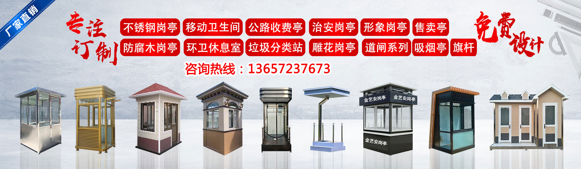 武漢金藝安金屬制品有限公司(簡稱JYA)是一家專業從事設計、生產制作加工、銷售及售后服務一體化,為客戶提供建筑/交通/市政配套設施一站式服務企業。主營:不銹鋼崗亭,值班崗亭,形象崗臺,防彈崗亭,氟碳噴漆崗亭,治安崗亭、景觀崗亭,售貨亭,停車場收費亭、高速公路收費亭,不銹鋼旗桿,錐型旗桿,電動旗桿等系列產品。廣泛應用于:學校,廣場,體育場館,軍隊,酒店,企業單位,小區停車場,學校,醫院,工廠、市政交通收費、平安城市管理、景觀環境美化等領域。 我們不斷發展壯大,秉承“品質、信譽、服務”的經營理念參與市場競爭,堅持高技術、高品質、高效率的方針,結合用戶需求,不斷推出新產品,樹立品牌優勢。擁有經驗豐富的專業設計師和質量過硬的施工,銷售服務網絡遍及全國各地。 我們的宗旨:誠實守信, 追求卓越, 客戶至上。今后公司將一如既往,腳踏實地,與用戶攜手合作,共創輝煌!...